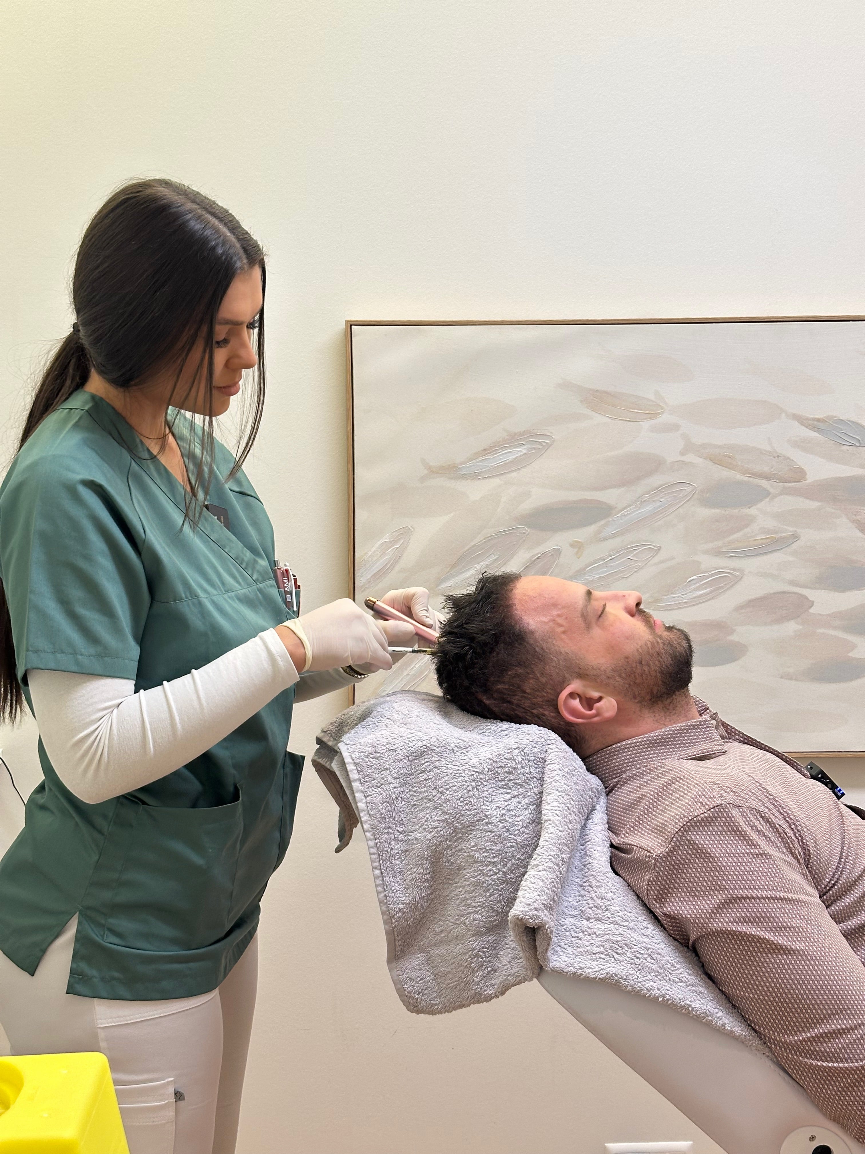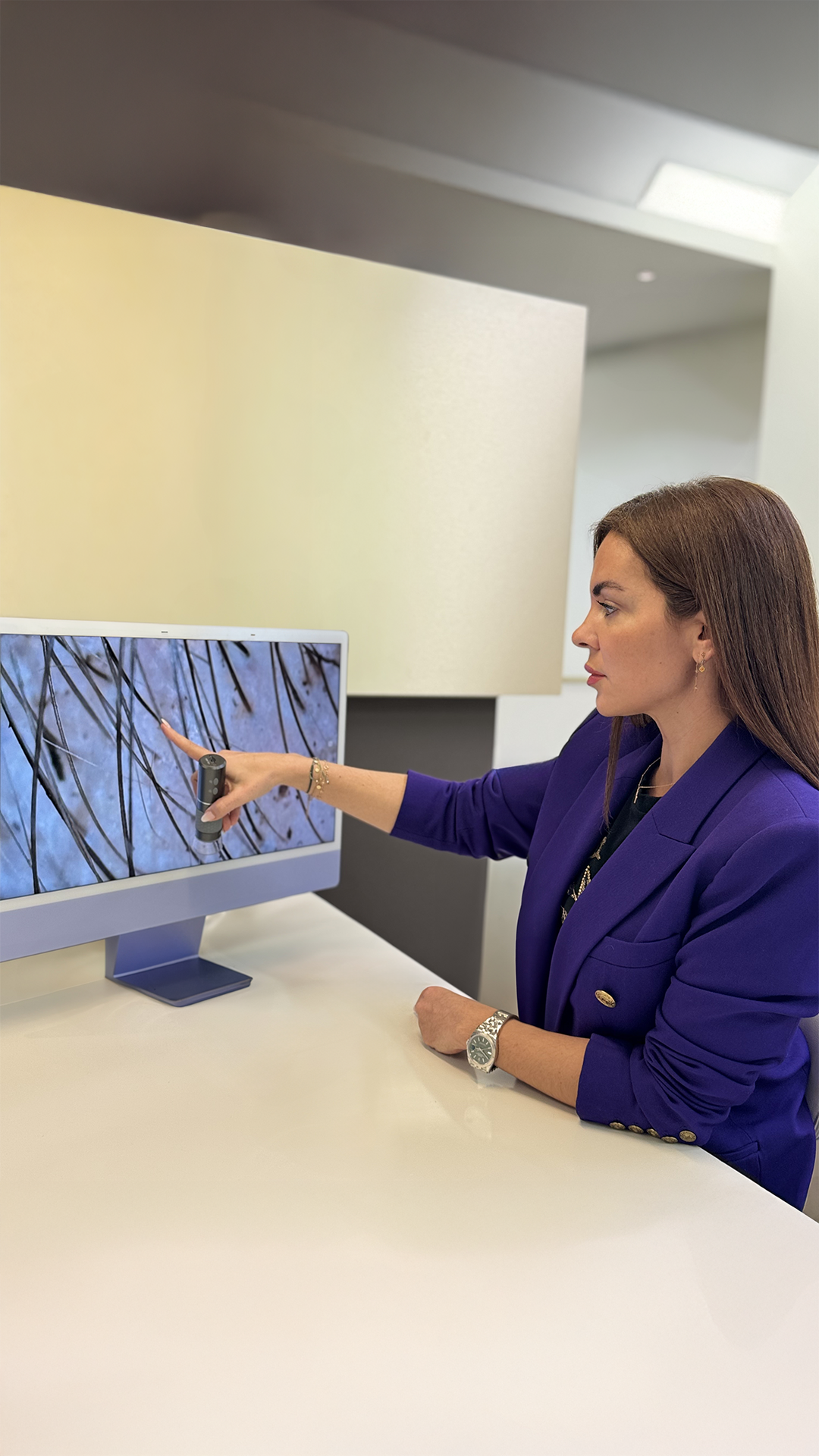 En cas d’intérêt, une consultation avec un médecin est organisée. Un bilan sanguin ainsi qu'une trichoscopie sont effectués, afin de faire un diagnostic complet de votre cuir chevelu et ainsi pouvoir vous proposer un plan de traitement personnalisé en fonction de vos besoins.